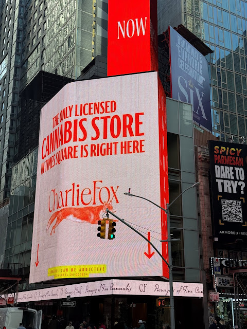 Here's a modern view from Times Square. (Note the warning and font size in yellow at the bottom of the sign...)
